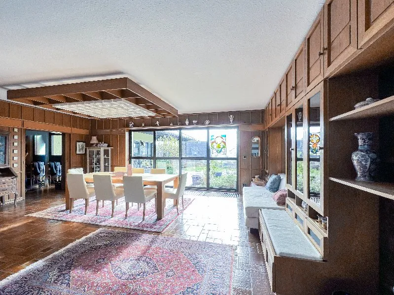 Willkommen in diesem wunderschönen, massiv gebauten Bungalow aus dem Jahr 1977 der auf einem großzügigen Grundstück von 2023 m² steht. Dieses einzigartige Anwesen bietet nicht nur ein beeindruckendes Raumangebot, sondern auch einen schönen Blick auf die umliegende Landschaft. Dieser Bungalow verfügt über insgesamt drei Badezimmer, ein Gäste-WC, zwei Küchen, fünf Schlafzimmer und einen großen, offenen Wohn-/Essbereich, der zum Entspannen und Genießen einlädt. Die hohen Decken und die großen Fenster bringen viel Licht ins Innere und schaffen eine helle, freundliche Atmosphäre. Der offene Grundriss ermöglicht es, die Räumlichkeiten nach Ihren Wünschen zu gestalten. Im Untergeschoss befindet sich eine separate Einliegerwohnung, die eine hervorragende Möglichkeit bietet, Gäste oder Familienmitglieder zu beherbergen oder hier ein Büro einzurichten. Das Haus verfügt über ein neueres Dach und eine moderne Gas Heizungsanlage. Bitte beachten Sie, dass Renovierungsarbeiten je nach persönlichem Geschmack und Bedarf durchgeführt werden können. Obwohl das Anwesen bereits zahlreiche hochwertige Ausstattungsmerkmale aufweist, wie beispielsweise modernisierte Badezimmer, eine renovierte Heizungsanlage und ein neues Dach, müssen noch weitere Aktualisierungen vorgenommen werden. Z.B. Holzdecken entfernen, Bodenbeläge im Wohnbereich erneuern, die Fenster sind Isolierverglast und in einem gepflegten Zustand (Alu) - jedoch entspricht der K-Wert nicht mehr heutigen Anforderungen. Gerne können Sie sich vor Ort ein Bild von der Immobilie machen und sich von den Möglichkeiten inspirieren lassen. Dieses Anwesen ist eine einzigartige Gelegenheit, ein großzügiges und komfortables Haus in einer gepflegten, gewachsenen Umgebung zu erwerben. Mit seinen großzügigen Wohnbereichen, den hochwertigen Ausstattungen und den vielen Gestaltungsmöglichkeiten ist es ein wahres Juwel, das darauf wartet, von Ihnen entdeckt zu werden. Auf dem großen Grundstück haben Sie genügend Platz für ein Schwimmbad, Klettergerüst und Co. Eine geräumige Garage für 2 Autos bietet ausreichend Platz für Ihre Fahrzeuge. Nach hinten wäre das Grundstück mit einem weiteren Haus bebaubar. Zögern Sie nicht, uns zu kontaktieren, um weitere Informationen zu erhalten oder einen Besichtigungstermin zu vereinbaren.