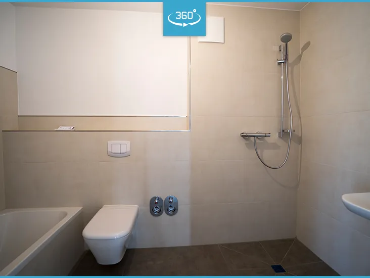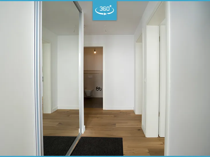 Kompakt und doch so großzügig. Gleichzeitig Terrasse und Balkon? - ja das gibts wirklich. Entspannen auf dem südlichen Balkon mit atemberaubendem Blick oder die Ruhe genießen auf der nördlichen Außen-Terrasse - Sie entscheiden. Maximale Privatsphäre garantiert Ihnen Ihr eigener Hauseingang. Durch die zu der Wohnung zugehörige Treppe erreichen Sie Ihre Wohnung in wenigen Stufen. Schon beim Betreten der Wohnung möchte man dort am liebsten sofort einziehen. Denn es ist für Ihren Einzug alles vorbereitet. Helle Fliesen im Riesen Format und bereits tapezierte Wände machen Ihren kurzfristigen Einzug perfekt. Der offene Wohn- Essbereich mit Zugang zum Balkon bildet helles und komfortables Mittelpunkt Ihrer Wohnung. Die beiden Schlafräume verfügen über direkten Zugang zu Ihrer privaten Terrasse. Hochwertiges Bad mit Wanne und bodengleichen Dusche komplettiert Ihr neues Eigentum. Zu jeder Wohnung gehört mind. ein Tiefgaragenstellplatz, welcher für 15.000,00 EUR erworben werden kann. Ganz gleich was Sie erwarten, es übertrifft Ihr Vorstellungsvermögen. Lassen Sie sich inspirieren und richten Sie sich jetzt schon in diese bezugsfertige Luxuswohnung ein. Live mit uns, oder gemütlich von daheim am PC: Für diese Immobilie bieten wir Ihnen eine Onlinebesichtigung in 360 Grad an.