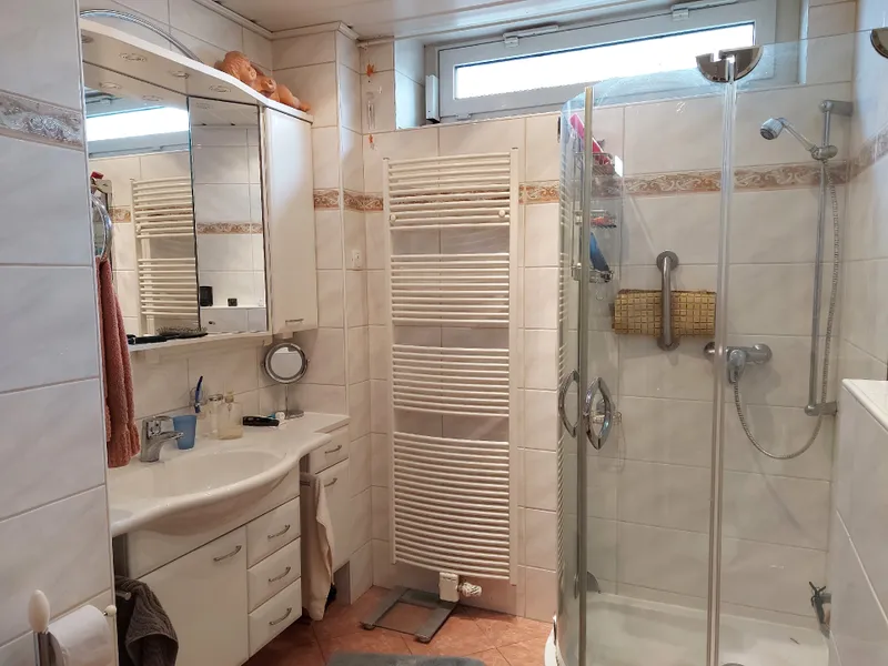 PV-Anlage: Neubau 2015 mit 7 KWpi mit Speicher Altbau 2022 8 KWpiß mit Speicher Altbau 2023 4 KWpi mit Speicher Baujahr Anbau: 2008 Weiße Kunststofffenster elektrische Rollladen mit Sonnensensor Klimasplitgeräte im Wohnbereich Gas-Heizung, Brennwerttechnik 2024 Kachelofen Böden wurden alle zwischen 2008 und 2012 erneuert Küche im Erdgeschoss ist im Kaufpreis enthalten Sanitärartikel im Erdgeschoss: weiß Klinkerfassade Vollunterkellerung Holzvertäfelte Decken Kunststofffenster mit elektrischen Rollos Fliegengitter an Balkontür ca. 48 m² wohnlich ausgebaute Nutzfläche im Spitzboden