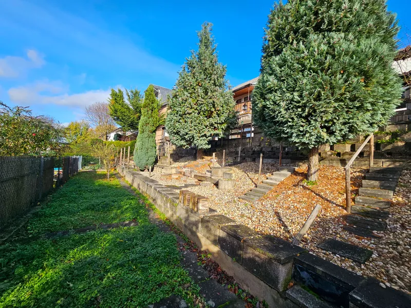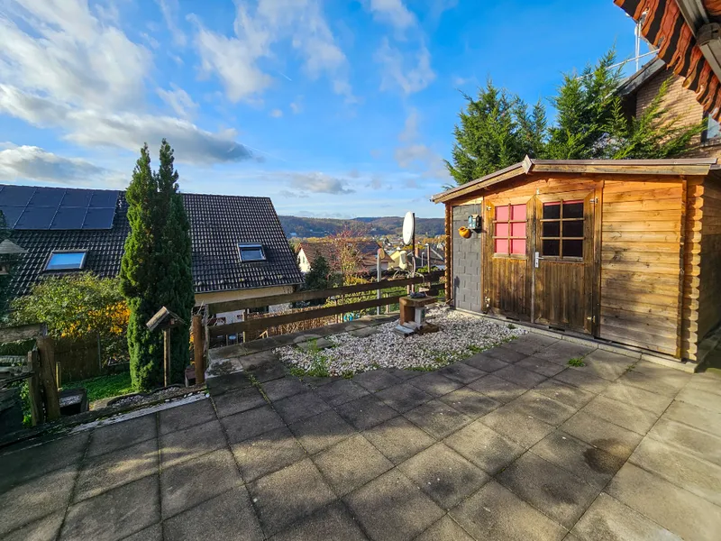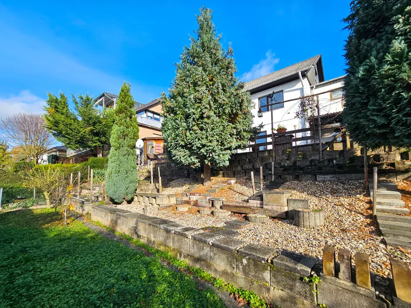 Hier erwartet Sie eine (bis auf die Bäder) im Innenraum renovierte Immobilie. Durch einen Wasserschaden im Jahr 2022 fand eine umfassende Sanierung des Hauses statt. Hierbei wurde u.a. die gesamte Elektrik erneuert, sowie fast alle Böden, Decken und Wände neu gestaltet! Darüber hinaus wurden die Zwischendecken des Hauses größtenteils neu gedämmt. Die Gesamtinvestition beträgt ca. über 130.000 EUR ! Das Haus hat ein massiv gebautes Gartengeschoss; EG und DG wurden als Fertighaus von der renommierten Firma Fingerhut errichtet. Beginnen wir mit dem Dachgeschoss. Die beiden Räume eignen sich als Kinder- bzw. Gästezimmer und wurden bis auf die Wärmedämmung nicht renoviert. Dies gilt auch für das Wannenbad. Im durchgehend renovierten Erdgeschoss steht das Wohnzimmer mit Ausgang auf den überdachten Balkon (mit Markise) im Mittelpunkt. Eine geräumige Küche, zwei Zimmer, die Diele und ein weiteres Wannenbad runden hier das Angebot ab. Im Souterrain, welches über einen separaten Eingang verfügt, befindet sich eine gemütliche Gartenwohnung. Ein großer Raum mit Ausgang auf eine über 40 m² große Terrasse (mit Markise), die Küche (mit Einbauküche) und ein helles Wannenbad bieten viele Nutzungsmöglichkeiten. Die Gartenwohnung eignet sich hervorragend als Einliegerwohnung für ein Mehrgenerationen-Wohnmodell, als attraktive Ferienwohnung oder auch ideal für die Nutzung als Home-Office. Über die Diele erreichen sie noch einen zusätzlichen, vielseitig nutzbaren Raum. In allen Wohnräumen wurde der gesamte Bodenbelag (Vinyl) erneuert sowie die Decken und Wände neu gestaltet! Die Beheizung erfolgt über eine Ölzentralheizung von 2001 mit Warmwasseraufbereitung. Die Holzfenster sind doppelt verglast und mit Rollläden ausgestattet. In fast allen Räumen wurden ein Vinylboden verlegt.