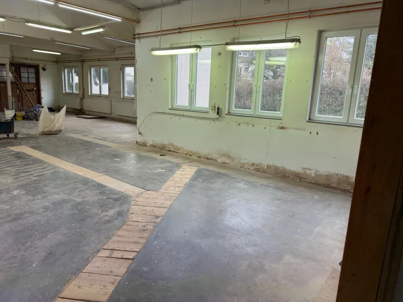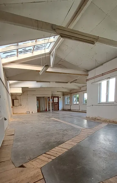 Die ca. 145 qm große Einheit liegt in einem Hinterhof in Solingen-Dorp, Nahe der Evangelischen Dorper Kirche. Die Produktionshalle / Werkstatt wird durch zahlreiche Fenster und Oberlichter mit viel Tageslicht versorgt. Komplettiert wird die Einheit durch einen separaten Büroraum und ein Duschbad. Eine direkte Durchfahrt zum Hinterhof ermöglicht Ihnen bequemes Be- und Entladen. Parkmöglichkeiten sind vorn an der Straße vorhanden. Die Halle wird über eine Gasheizung beheizt und verfügt selbstverständlich über Strom- und Wasseranschluss.