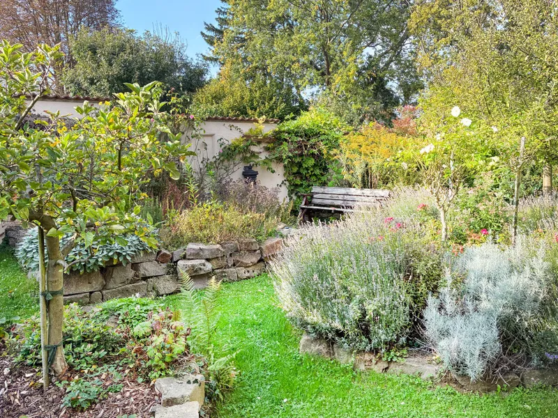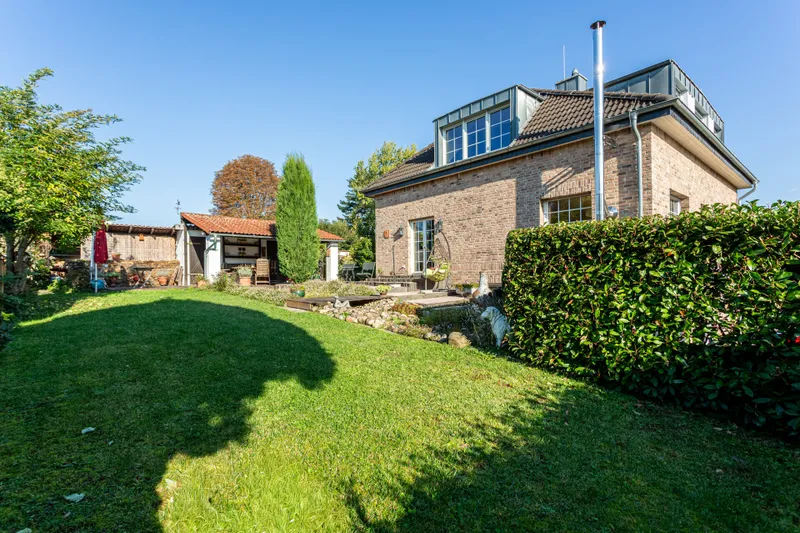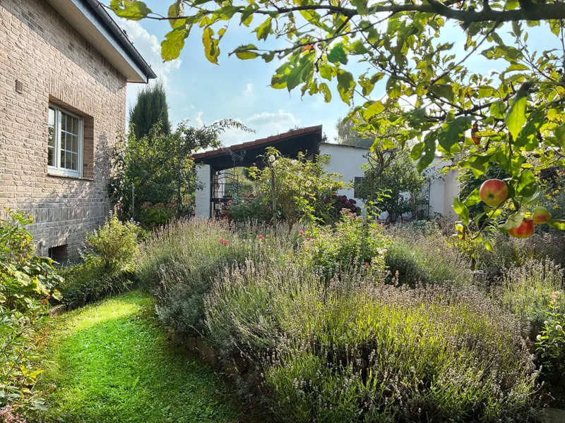 Dieses gepflegte Zweifamilienhaus befindet sich in attraktiver Hanglage von Alfter und bietet vielseitige Nutzungsmöglichkeiten sowie ein durchdachtes Raumkonzept auf allen Ebenen. Beim Betreten des Erdgeschosses öffnet sich ein großzügig geschnittener Flur, von dem alle Räume erreichbar sind. Das Erdgeschoss umfasst ein Badezimmer mit Tageslichtfenster und Badewanne, eine traumhafte Wohnküche mit direktem Zugang zur Terrasse/Garten mit schönem Blick ins Grüne, ein gemütliches Wohnzimmer mit Kaminofen und großen Fensterfronten sowie ein Schlafzimmer. Die hochwertige Einbauküche stammt aus dem Jahr 2023. Während Flur, Küche und Badezimmer gefliest sind, verfügt das Schlafzimmer über einen Holzboden und das Wohnzimmer über hochwertigen Laminatboden. Die 2000 errichtete Aufstockung (heute Dachgeschoss) bietet drei weitere Zimmer und ein modernes Duschbad. Ideal als Kinder-, Arbeits- oder Gästezimmer – oder als eigenständige Wohneinheit, da Anschlüsse für Küche und Waschmaschine bereits vorhanden sind. Vom Dachgeschoss im Flur kann der Speicher erreicht werden. Dieser sorgt für zusätzlichen Stauraum. Das Untergeschoss beherbergt eine kleine Einliegerwohnung, die 2024 umfassend modernisiert bzw. renoviert wurde. Das Badezimmer mit Dusche wurde vollständig erneuert, ebenso zum größten Teil der Bodenbelag und die Wandgestaltung. Die Wohnung ist barrierefrei gestaltet und verfügt über einen ebenerdigen Zugang mit extra breiter Haustür, einen geräumigen Eingangsbereich sowie einen hellen Wohn- und Schlafbereich mit angrenzender Küche. Zusätzlich befindet sich im Untergeschoss ein weiterer großer Kellerraum, der als Staufläche genutzt werden kann und zugleich als Luftschutzraum deklariert ist. Der Garten ist ein echtes Highlight dieser Immobilie. Er wurde aufwendig und liebevoll angelegt. Im Sommer gibt es Kräuter, viele Rosen und Lavendel. Außerdem noch Apfelbäume. Der Garten ist mit Strom- und Wasserleitungen sowie drei Bodentanks und teilweise Beleuchtung versehen. Der Außenbereich bietet gleich zwei Terrassen, von denen eine überdacht ist und direkt an einen Gartenschuppen mit zwei Abstellräumen angrenzt. Der geschmackvoll gestaltete Außenbereich lädt zum Verweilen ein und wird durch einen kleinen italienischen Brunnen stilvoll abgerundet – ein Ort zum Entspannen und Genießen. Weitere Ausstattungsmerkmale: - Doppelverglaste Fenster, teilweise mit Einbruchschutz - Teilweise elektrische Rollläden - Dämmung der Fassade (2007) - Fußbodenheizung im Dachgeschoss, Radiatoren im EG und UG - Vaillant-Heizungsanlage (2006) - Zwei separate Hauseingänge Interessant ist auch noch, dass das Grundstück vor dem Haus auch als Baugrundstück zur Verfügung steht.