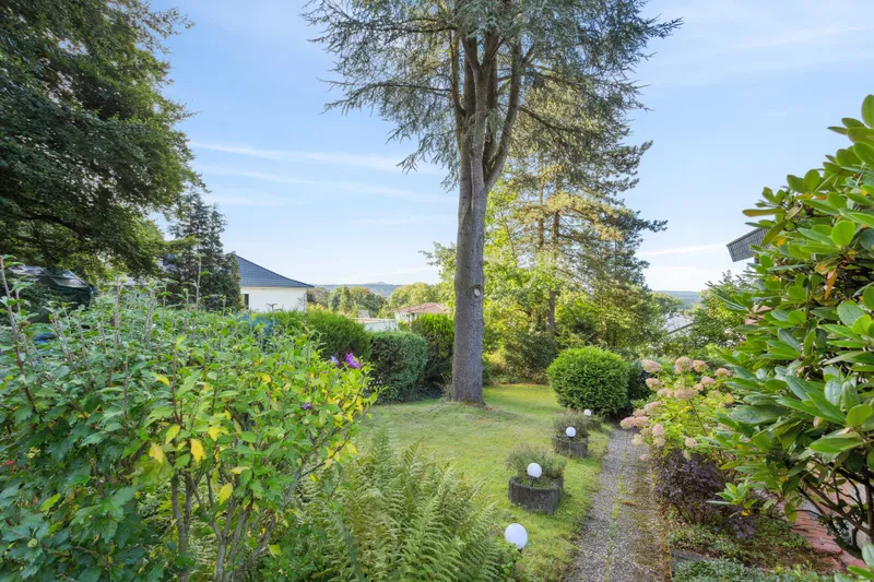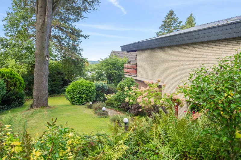 Dieses Zweifamilienhaus bietet einen traumhaften Weitblick ins Gebirge und ins Grüne, der besonders vom Erdgeschoss genossen werden kann. Die Wohnungsgröße im Erdgeschoss beträgt ca. 120 m² und hat einen Mietzins von aktuell 1.400,00 € monatlich. Die Gartengeschosswohnung hat eine Größe von ca. 64 m² und einen aktuellen Mietzins von 675,00 € monatlich. Bei den Beträgen handelt es sich um die Warmmieten, wobei für beide Wohnungen Erhöhungspotenzial besteht. Beim Betreten des Erdgeschosses gelangt man über die Diele direkt in den offen gestalteten Wohn-, Küchen- und Essbereich, der dank hellen Fliesen und bodentiefer Fenster von Licht durchflutet wird und einen herrlichen Ausblick eröffnet. Die Holzbalken und Holzverkleideten Decken sorgen für ein Wohlfühlambiente. Im Wohnzimmer befindet sich außerdem eine großzügige Kaminecke, welche über drei Stufen erreicht werden kann und durch Fenster mit elektrischen Rollläden direkten Ausblick in den Garten bietet. Vom Wohnzimmer aus besteht auch der Zugang zum Balkon, der zum Verweilen und Genießen einlädt. Dieser ist mit einer Markise ausgestattet. Das Schlafzimmer liegt gleich nebenan und bietet ebenfalls einen direkten Balkonzugang. Angrenzend befindet sich ein Badezimmer mit Badewanne und Dusche, das durch ein Tageslichtfenster zusätzlichen Komfort bietet. Ein separates Gäste-WC gleich im Eingangsbereich rundet das Raumangebot dieser Ebene ab. Auch dieses ist mit einem Tageslichtfenster ausgestattet. Beim betreten der Wohnung im Gartengeschoss sind alle Räume durch einen Flur miteinander verbunden. Auf der rechten Seite befindet sich die Küche und zur linken Seite befinden sich das Schlafzimmer, sowie das Wohn- bzw. Esszimmer. Am Ende des Flurs findet man das Badezimmer mit Dusche. Durch die Hanglage und die Bodentiefen Fenster profitieren auch die Räume im Untergeschoss von einer angenehmen Helligkeit und einem Blick in den Gartenbereich. Ein separater Teil des Gartengeschosses verfügt über einen großzügigen Raum, welcher aktuell als Partykeller genutzt wird. Dieser bietet viel Platz für Abstellmöglichkeiten, Fitness oder kreative Projekte. Er steht beiden Mietparteien zur Verfügung. Die Erdgeschosswohnung gelangt direkt über eine Wendeltreppe im Eingangsbereich in den Kellerbereich des Gartengeschosses und auch zu den zum Erdgeschoss gehörigen Räumen wie dem Vorratsraum. Dieses Haus ist vielseitig nutzbar und beispielsweise auch ideal für den Eigenbedarf von Familien geeignet.